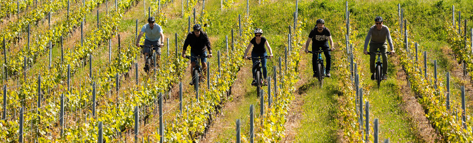 Pour découvrir la richesse des vignobles d’Aigle et d’Yvorne, la Maison Henri Badoux emmène les cyclistes en e-bike au cœur des vignes. Sur la terrasse de la capite, les vins se dégustent accompagné de produits du terroir.